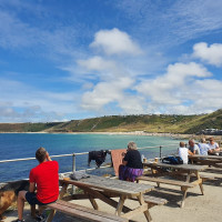 “ The loveliest food and friendliest of cafes ! Anton and Izzie are natural Cafe owners and clearly love their customers enjoying the food and location . Right on the sea front the cafe offers delicious breakfasts lunches and cake to die for - they also have a license to sell beers so an added bonus . We holiday in Sennen regularly and my all Time favourite moments are the breakfasts at the cafe ( home made Granola is my current favourite ) after a walk with the dog or a swim and not only do the staff love dogs …. But dogs love the menu too ! ”